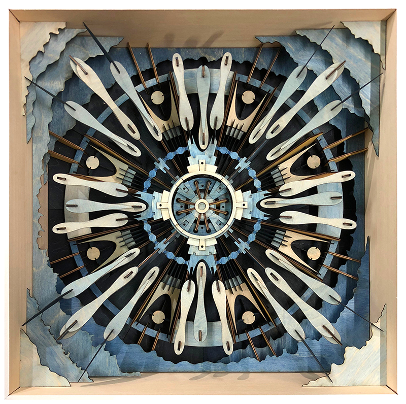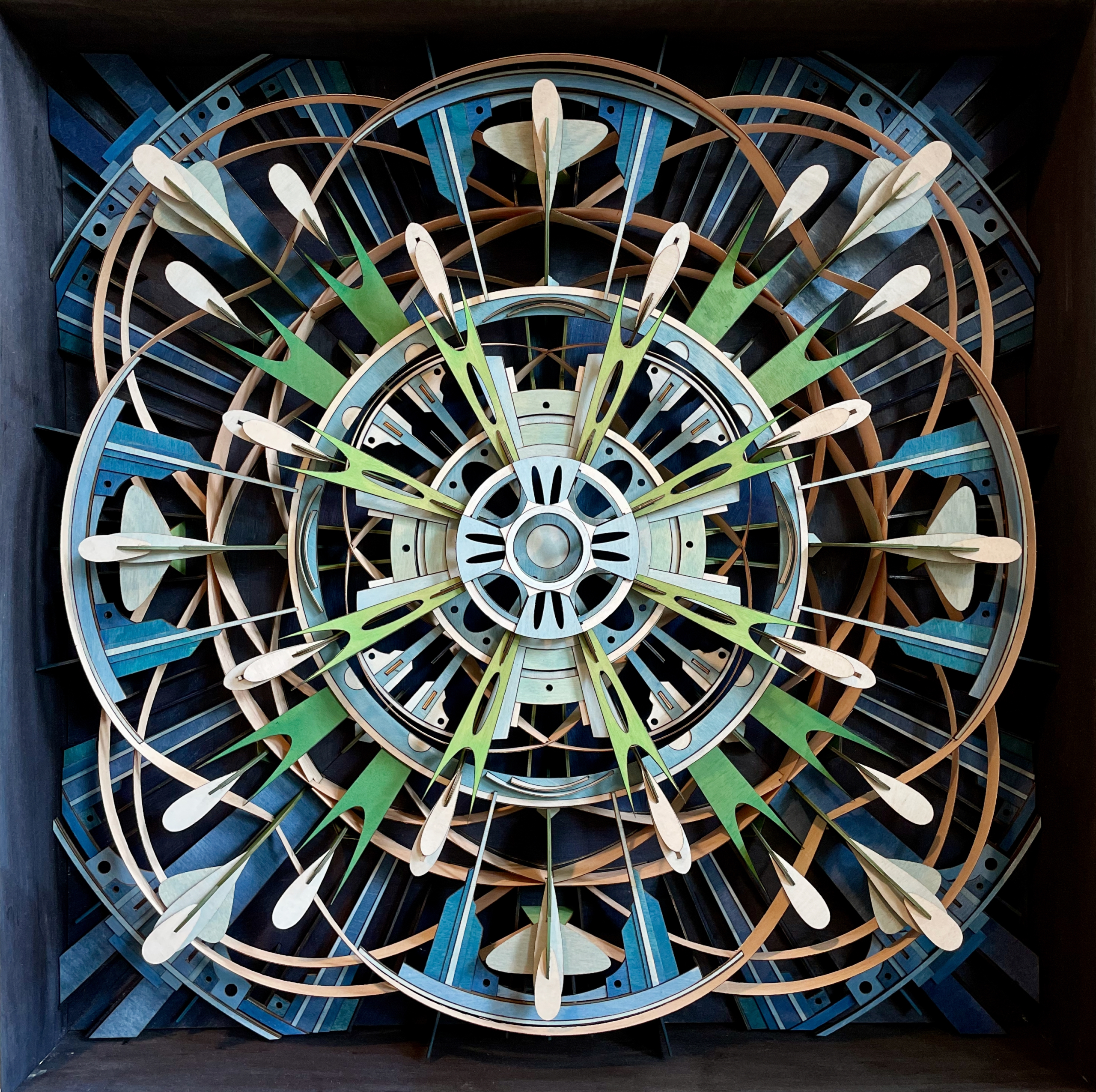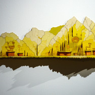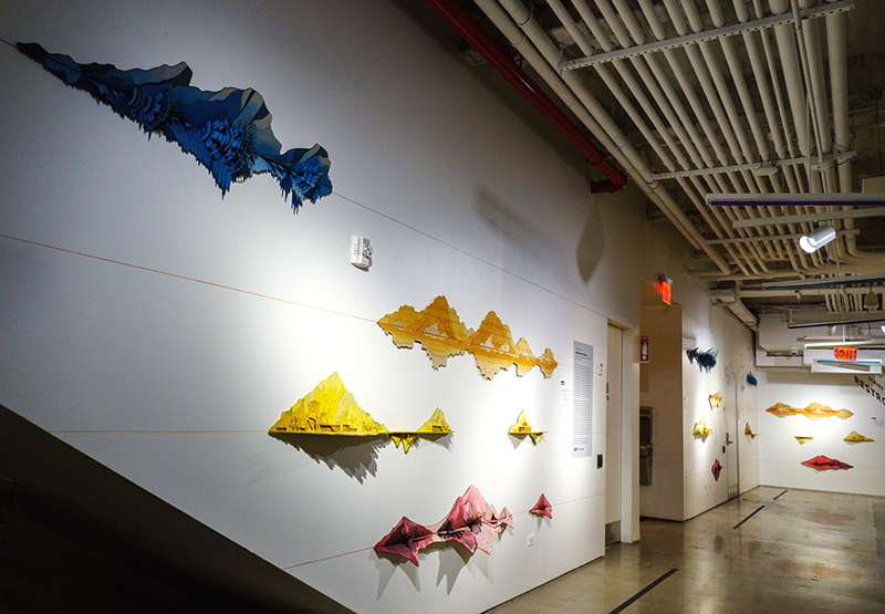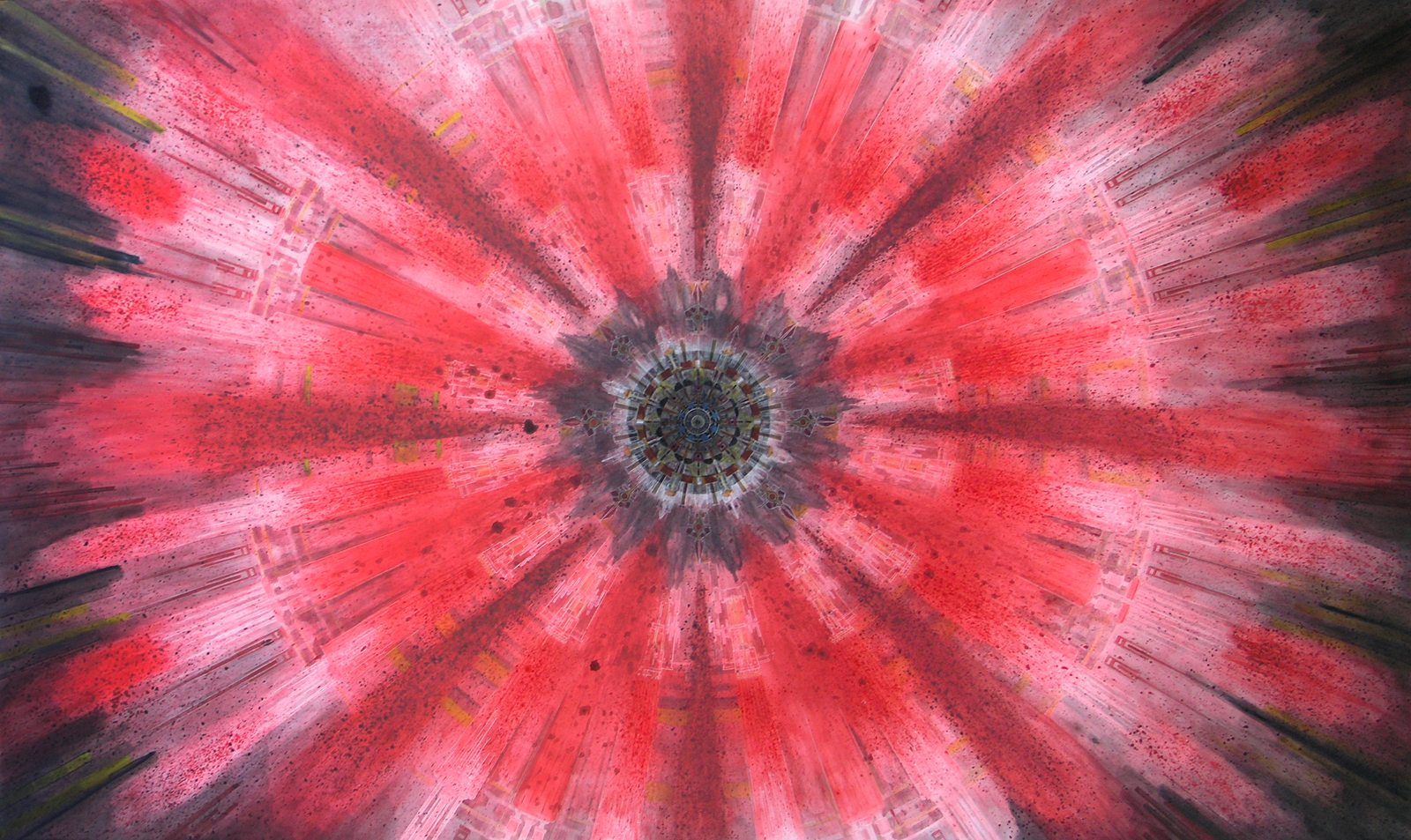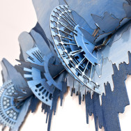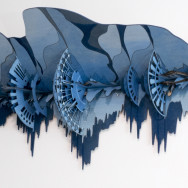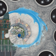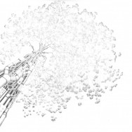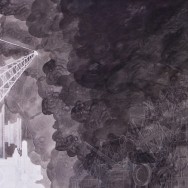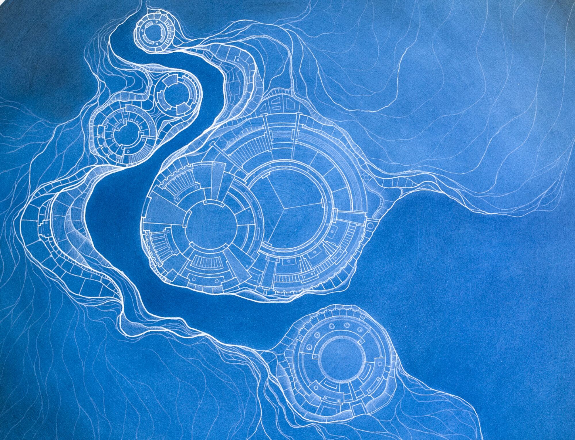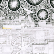 This series of drawings tell the story of a world very similar to our own. Made using architectural drafting techniques, they explore how using a system of simple rules (restricting the angles of lines, repeating components, fractal logic) can yield a seemingly complex, even chaotic, design that transcends the sum of its constituent rules. The primary graphic device is the line, indicating movement and trajectory. Through the composition of density, emptiness, and a tonal range of line weights, the lines give way to a reading of deep, three-dimensional space.