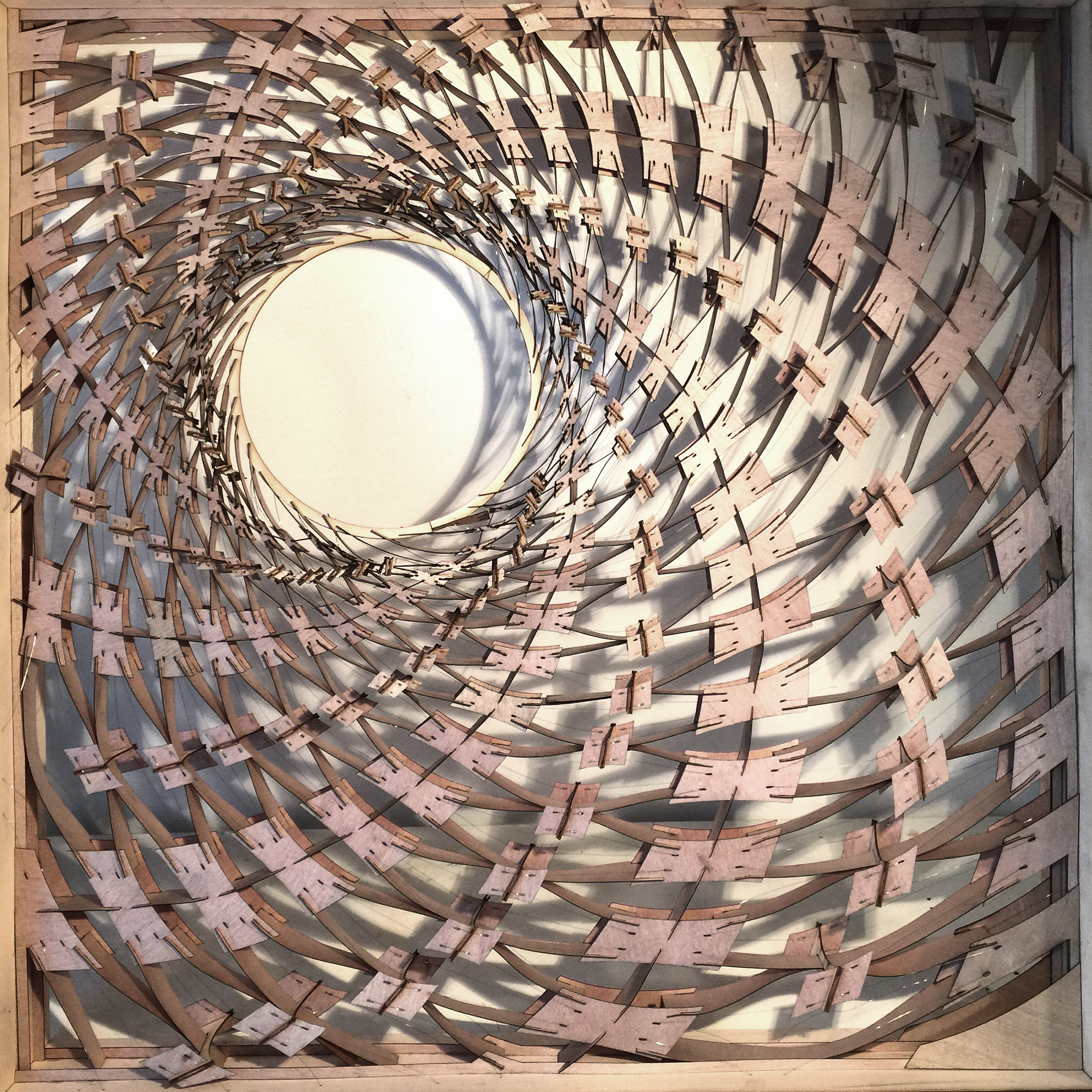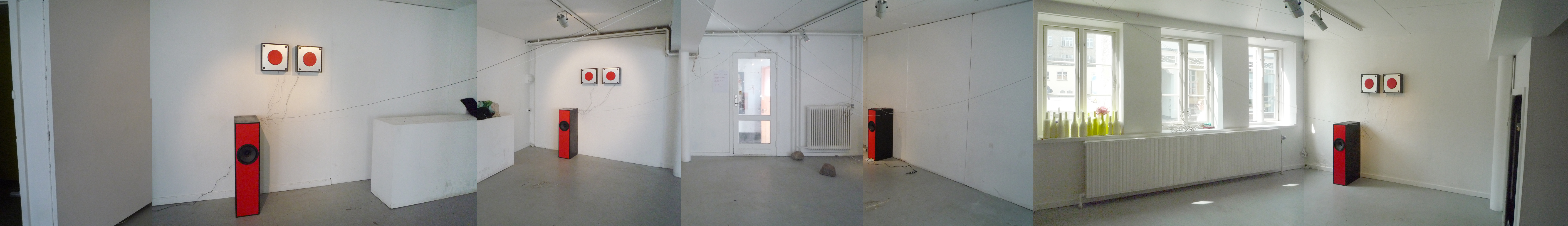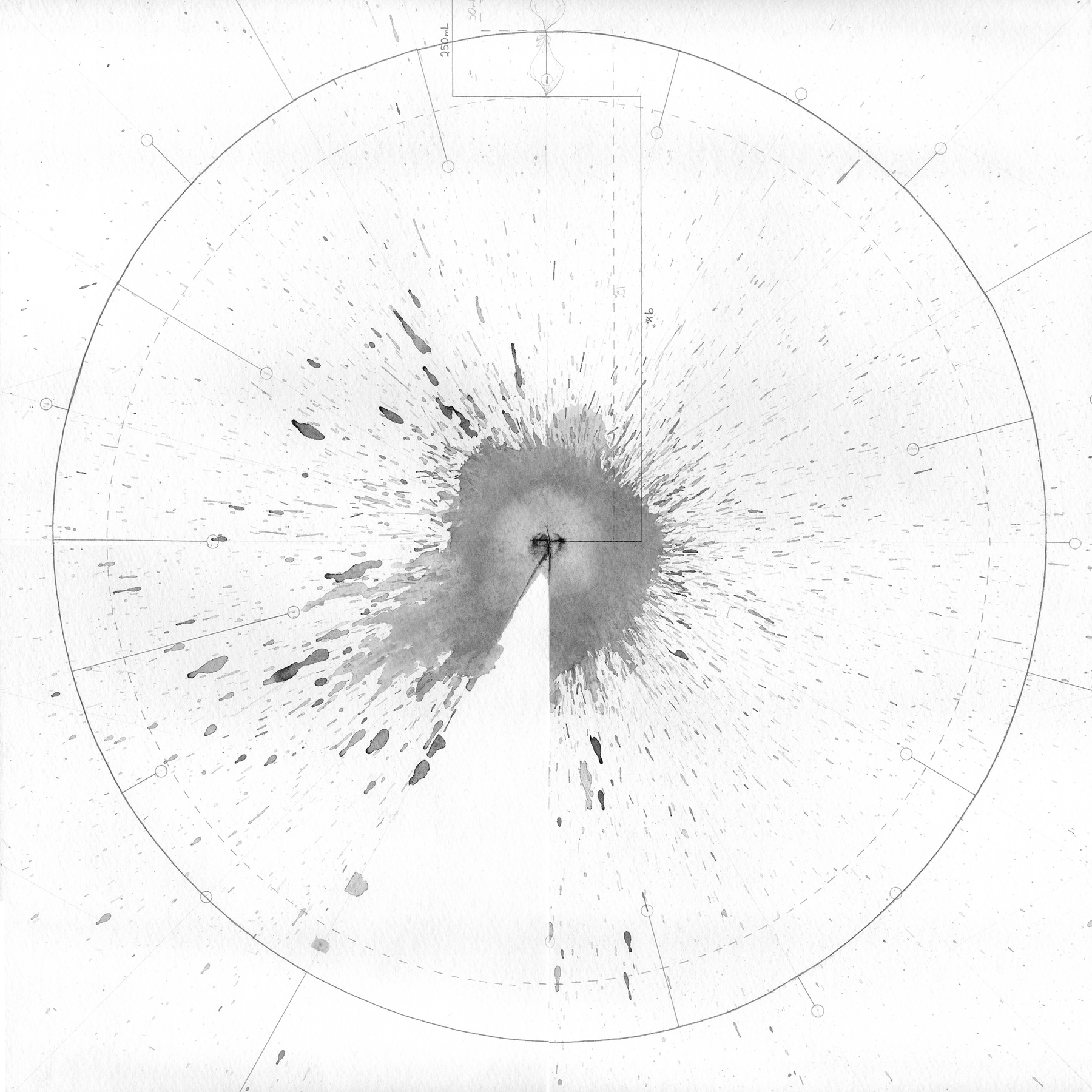 These paintings are the documentation of an experiment conducted between the hours of 10 pm and 6 am one night in September, 2006. The result of frozen ice melting and dripping from an elastic pulley into eight paper cones over eight intervals, the drawings measure the change in height from which the ice was melting as is mass gradually decreased and mark the range and density of the spatter with this change in height.