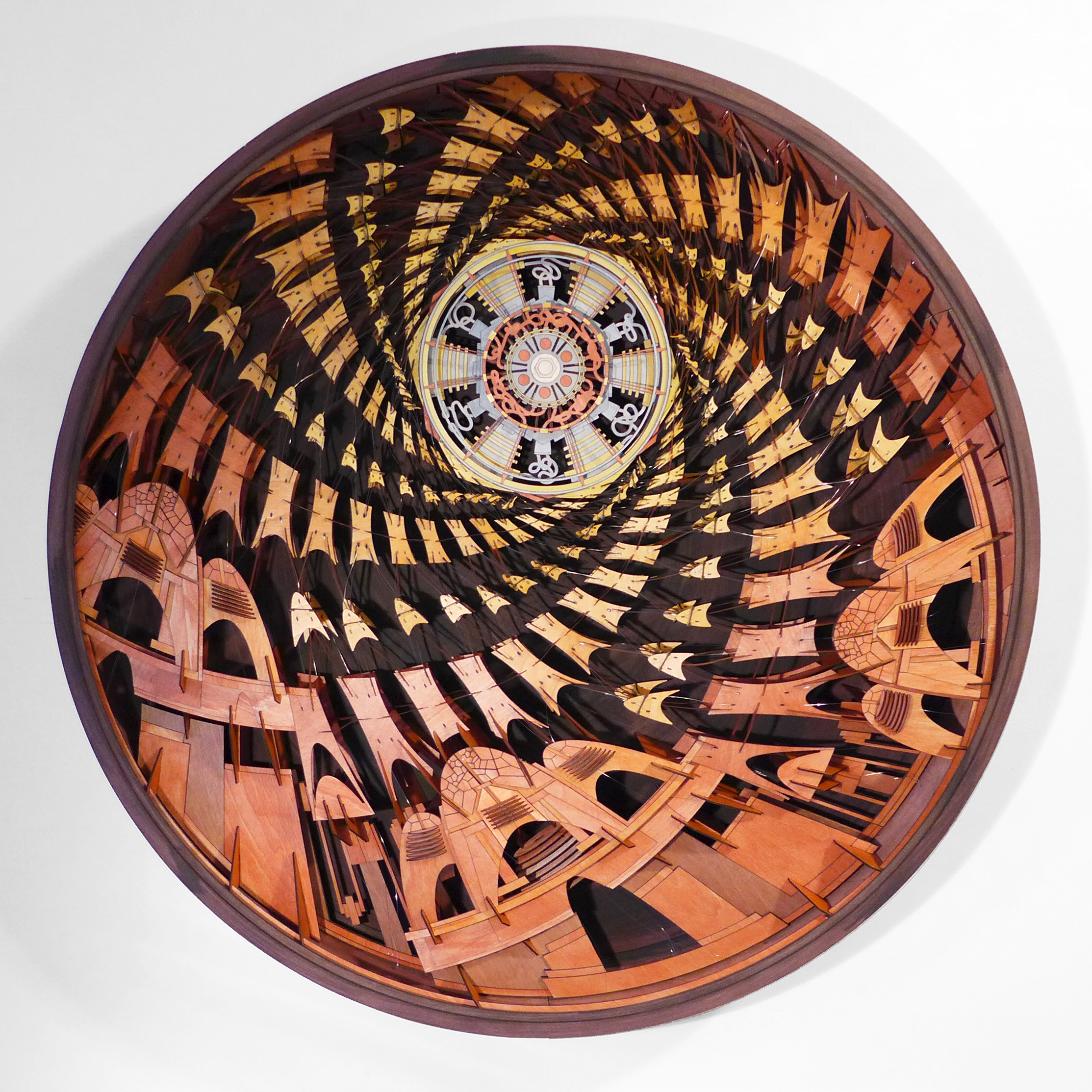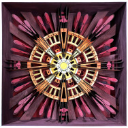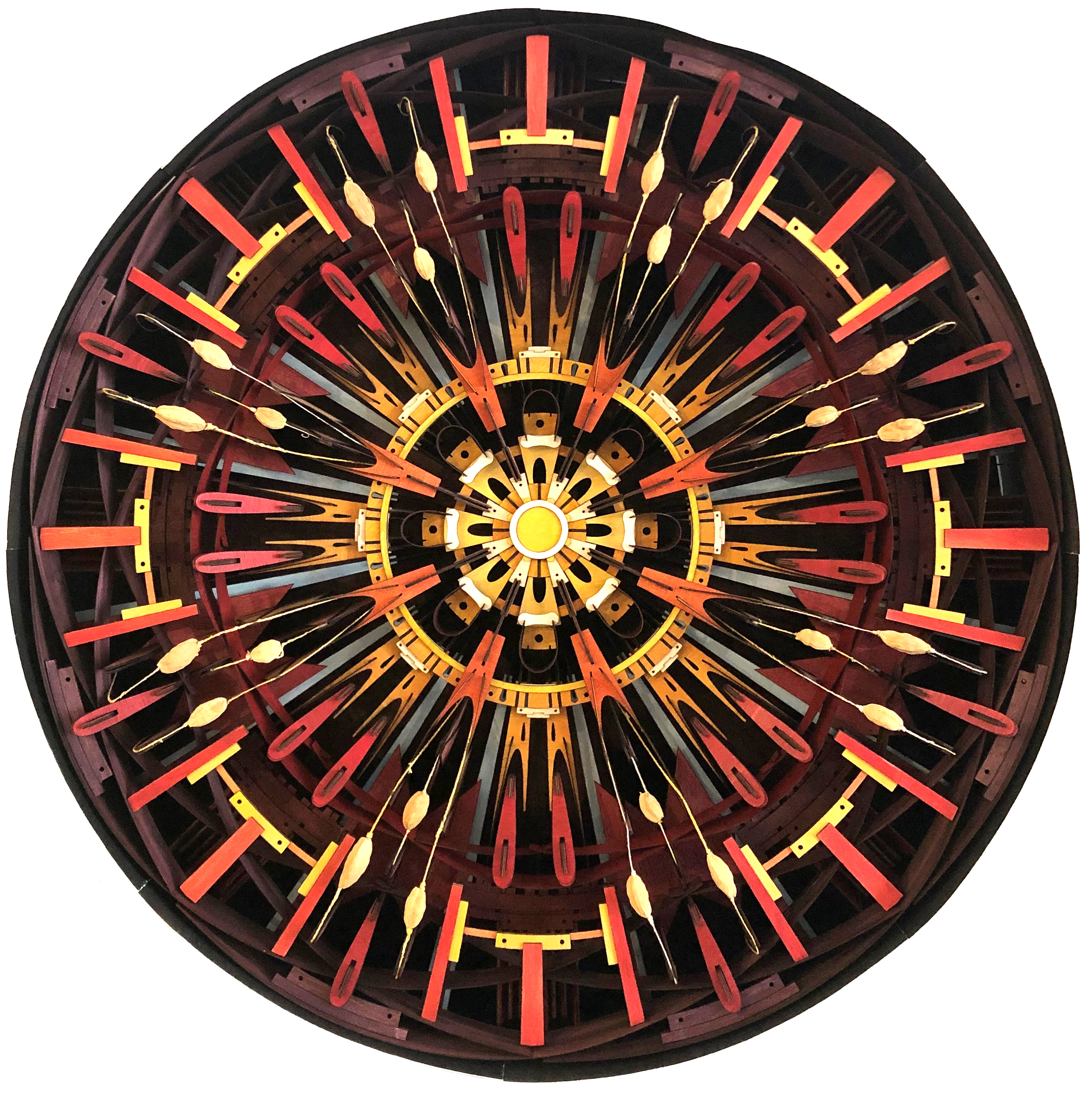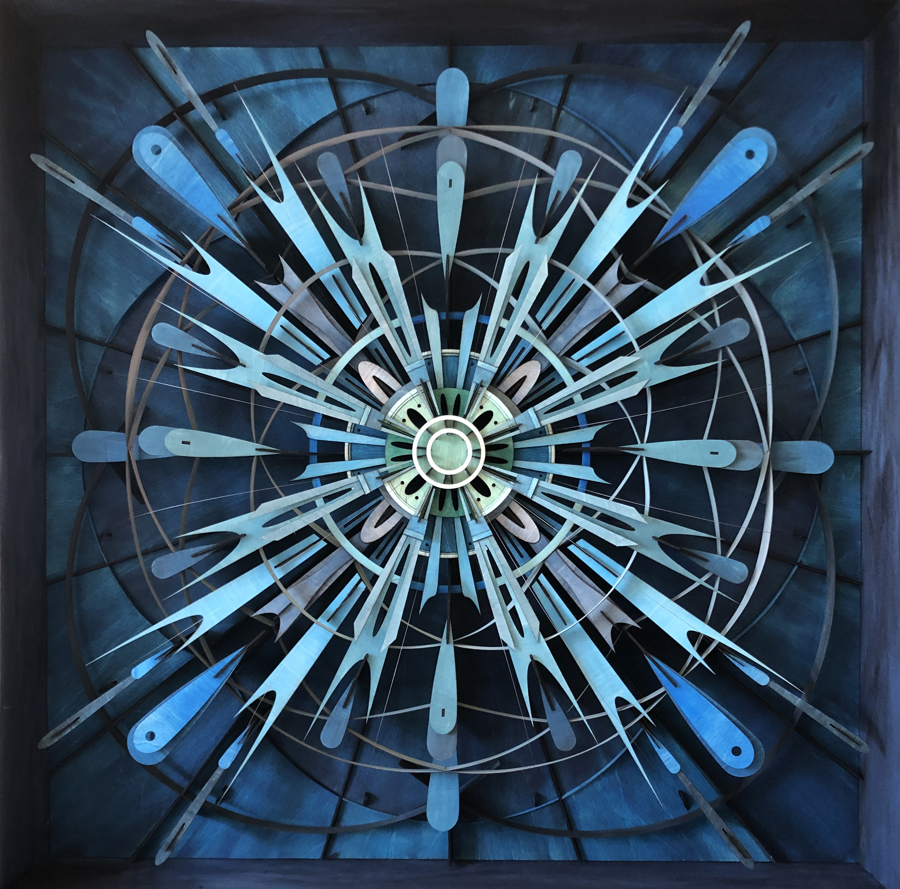 These paintings are the documentation of an experiment conducted between the hours of 10 pm and 6 am one night in September, 2006. The result of frozen ice melting and dripping from an elastic pulley into eight paper cones over eight intervals, the drawings measure the change in height from which the ice was melting as is mass gradually decreased and mark the range and density of the spatter with this change in height.